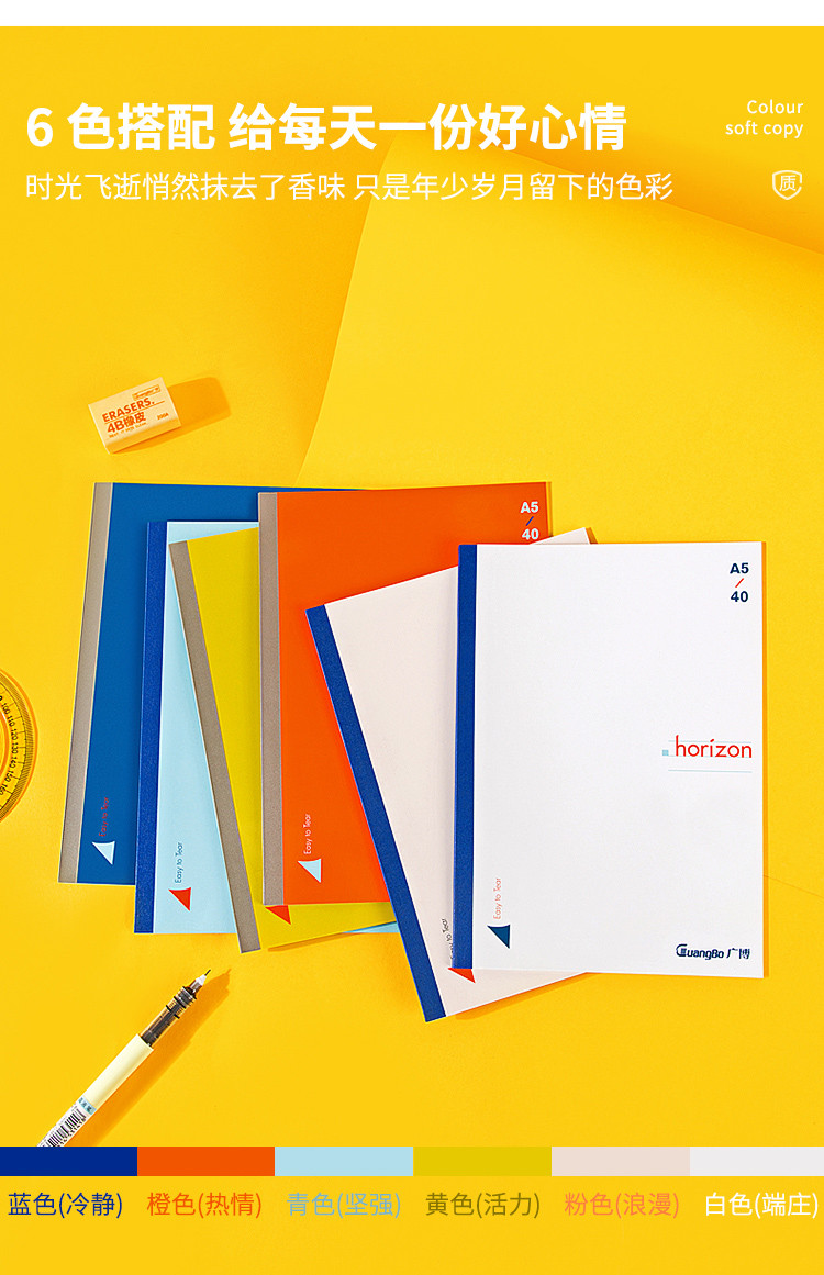 广博A5笔记本子40张60张软面抄商务办公用装订本学生软抄本6本/包
