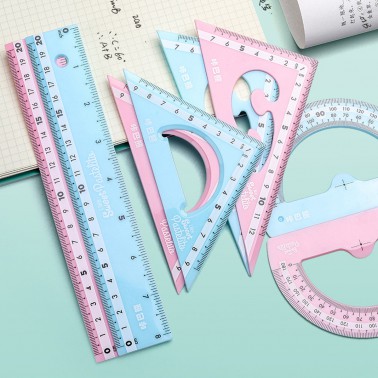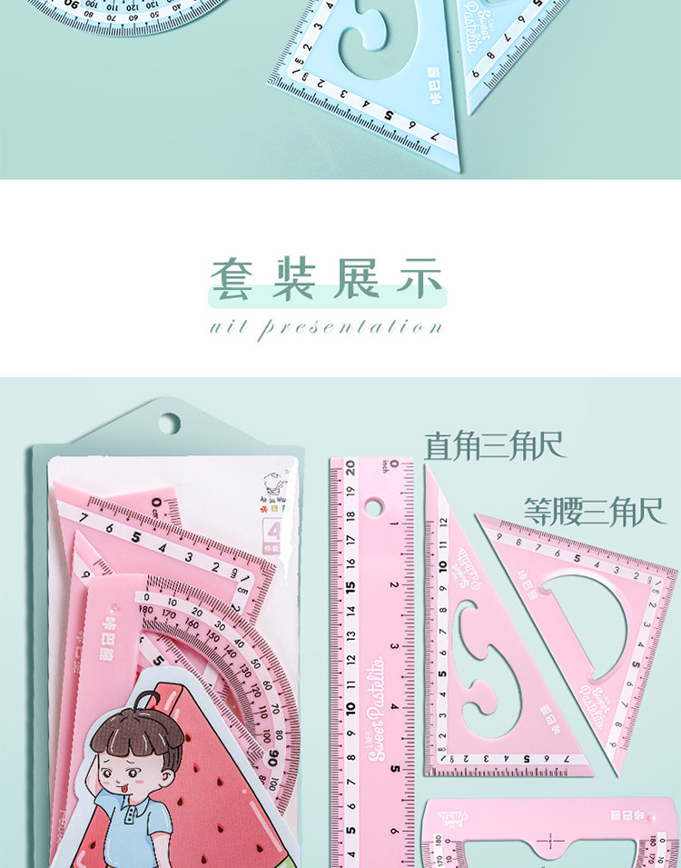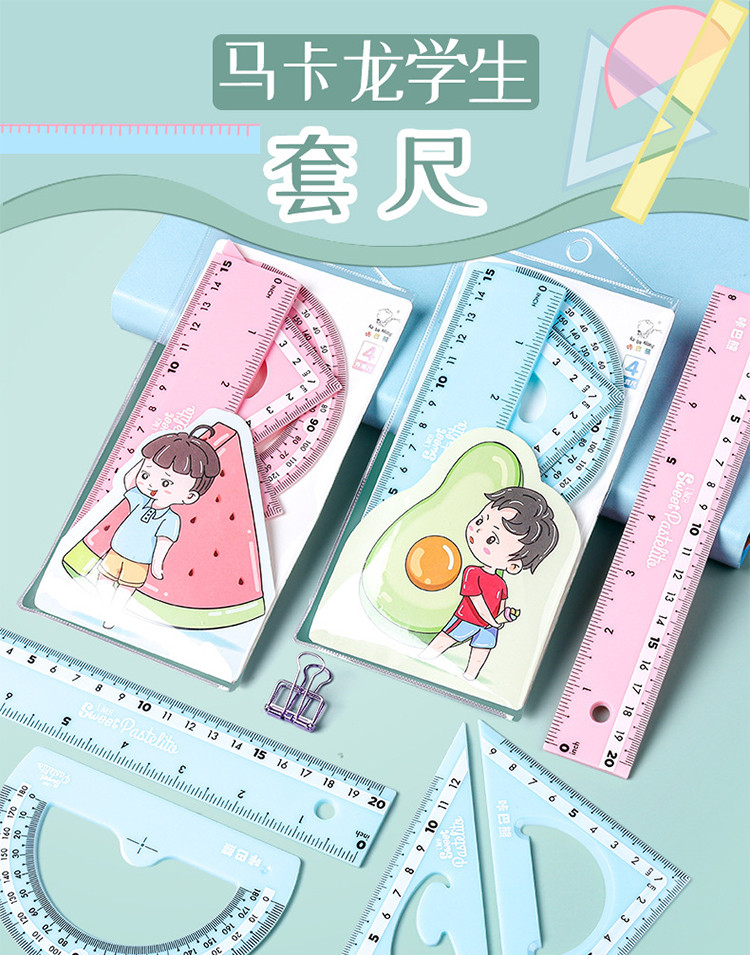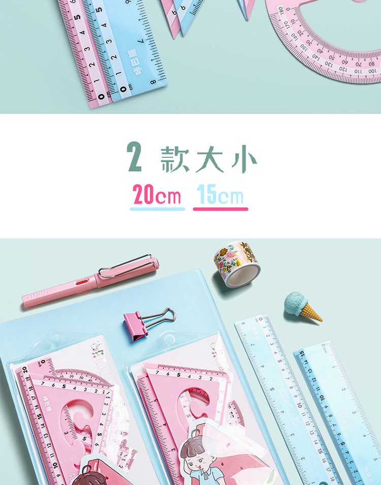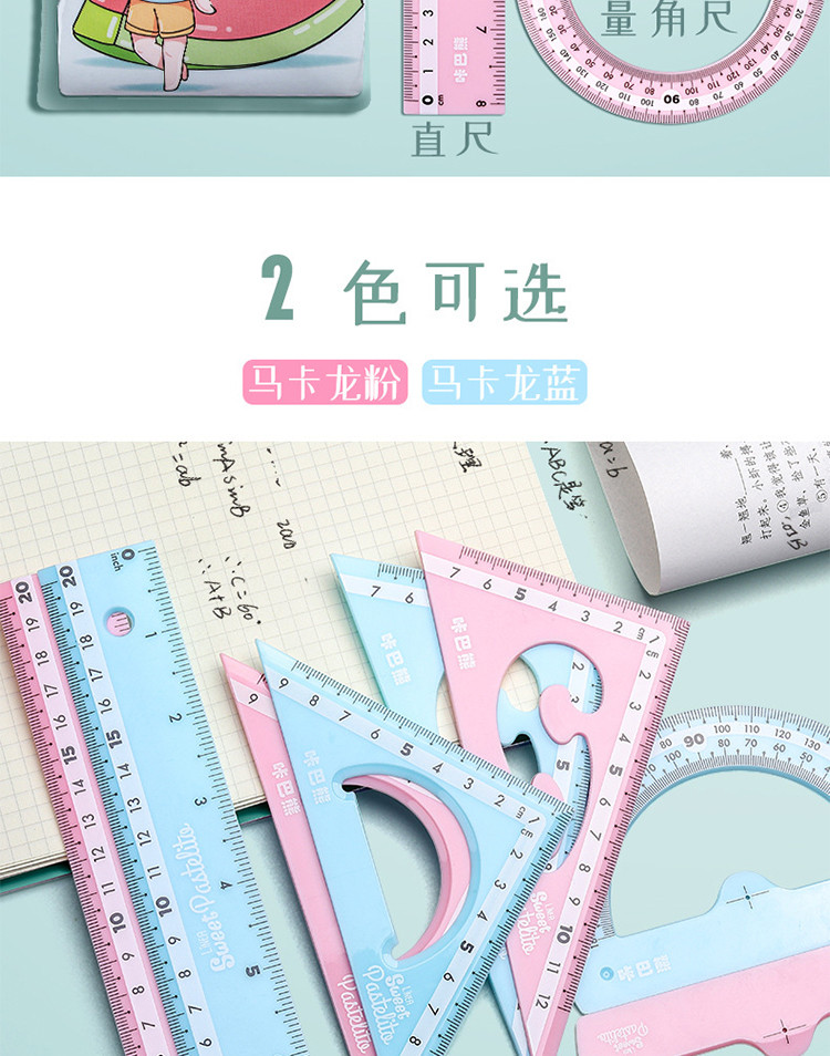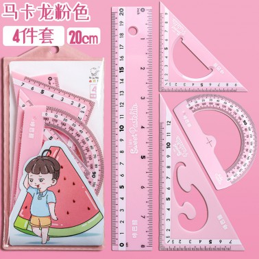 马卡龙色尺子文具四件套直尺三角尺学生用品圆规套装ins风