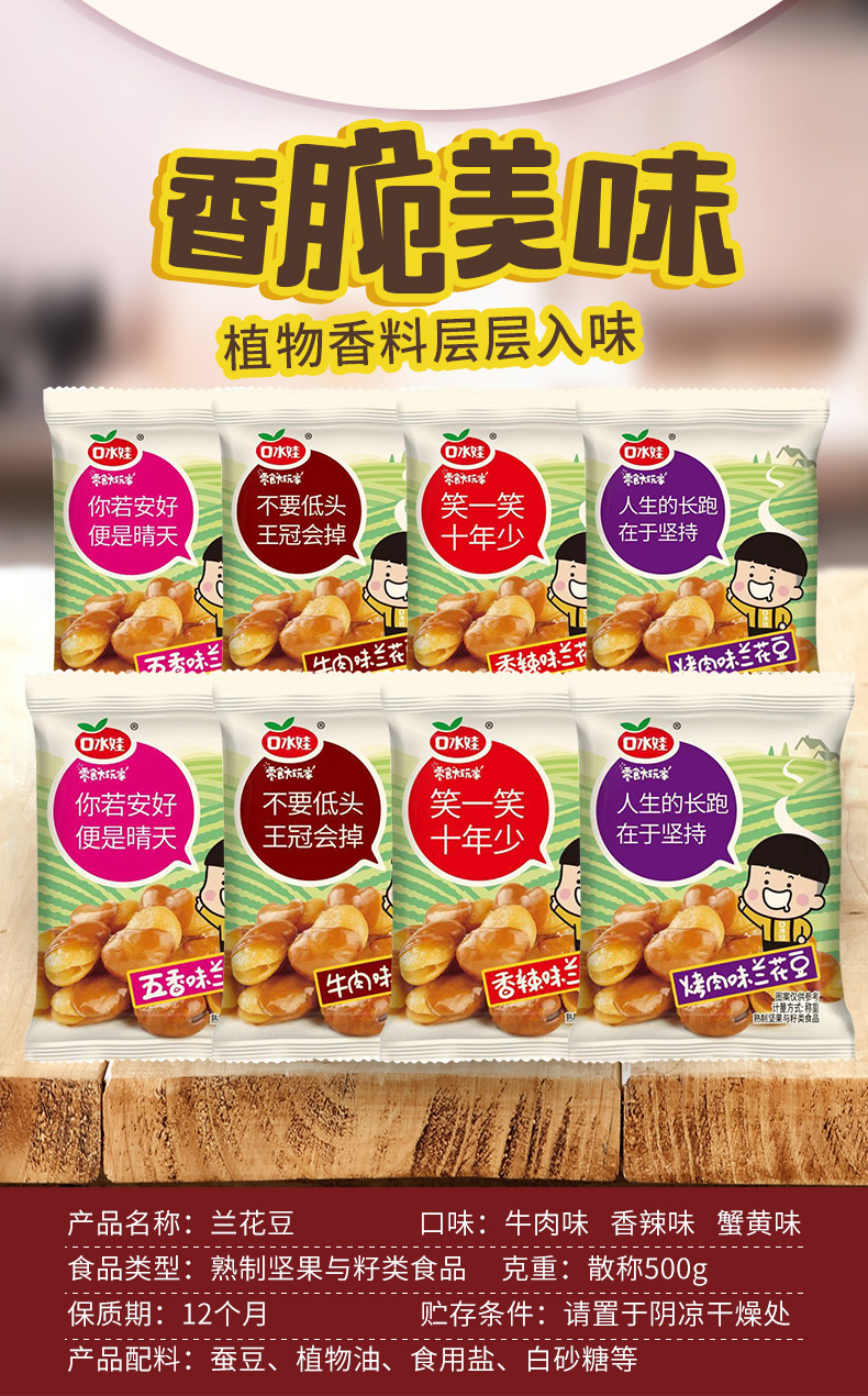口水娃兰花豆蚕豆散称500g坚果炒货小包装零食小吃休闲食品整箱