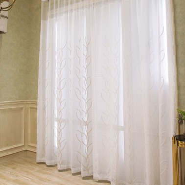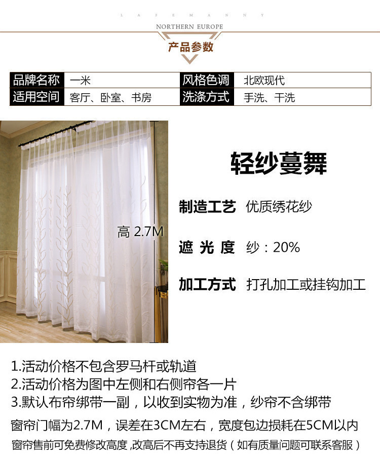 轻纱蔓舞 简约素雅客厅卧室飘窗阳台落地窗绣花纱帘窗纱-可定制