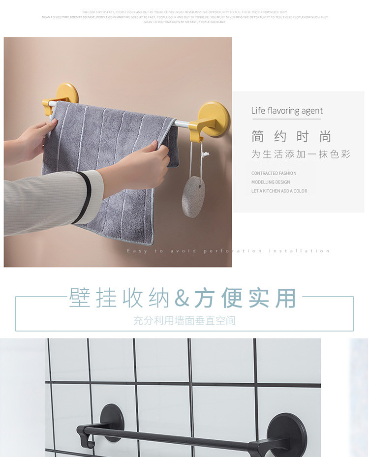 免打孔壁挂式毛巾架卫生间置物架洗澡间挂钩浴室拖鞋架毛巾杆