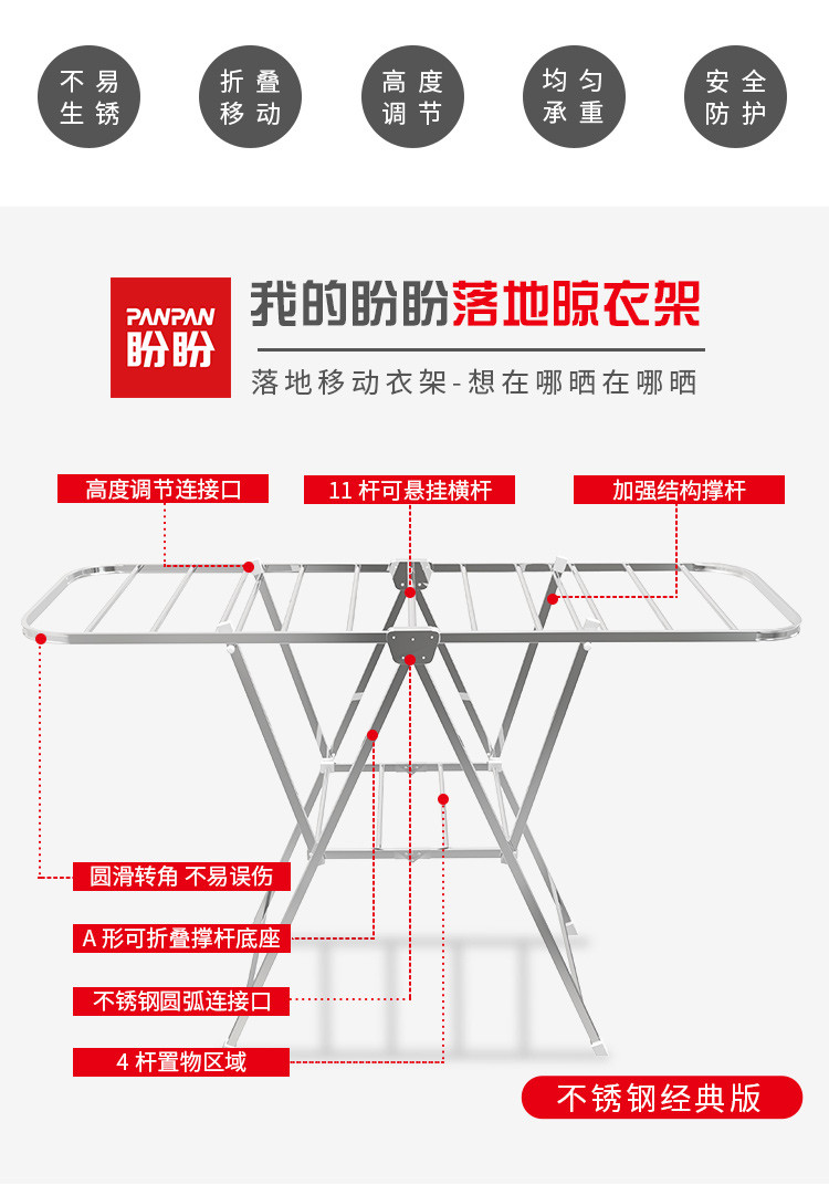 落地晾衣架室内折叠晾衣杆 阳台晒衣架不锈钢家用婴儿晾晒架