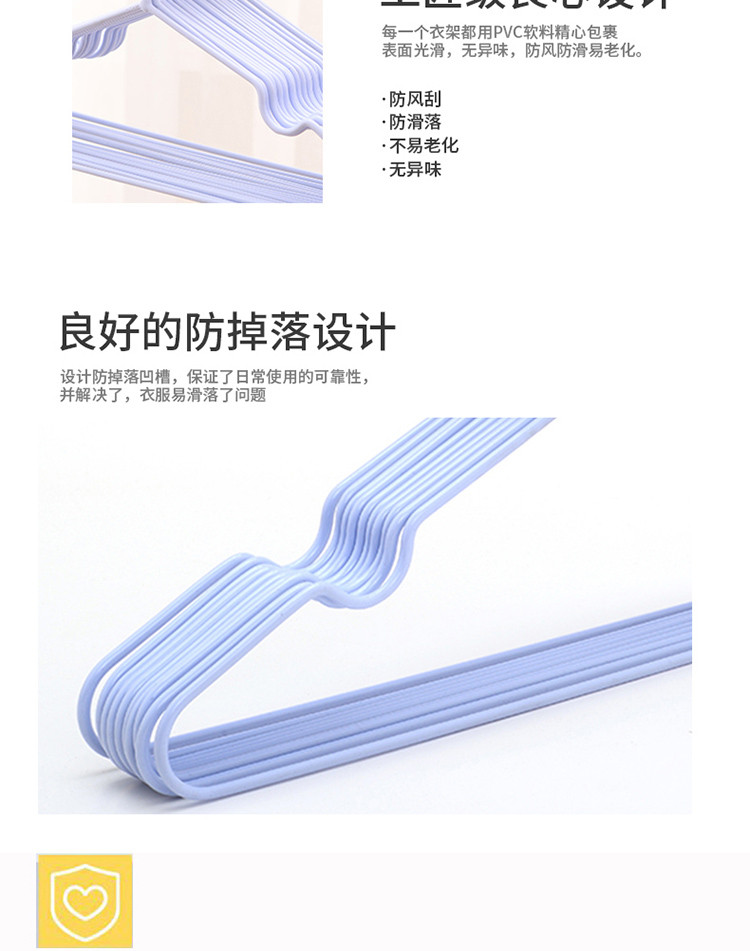 【加粗加厚】20个装浸塑防滑衣架家用无痕挂衣架晾晒衣服架
