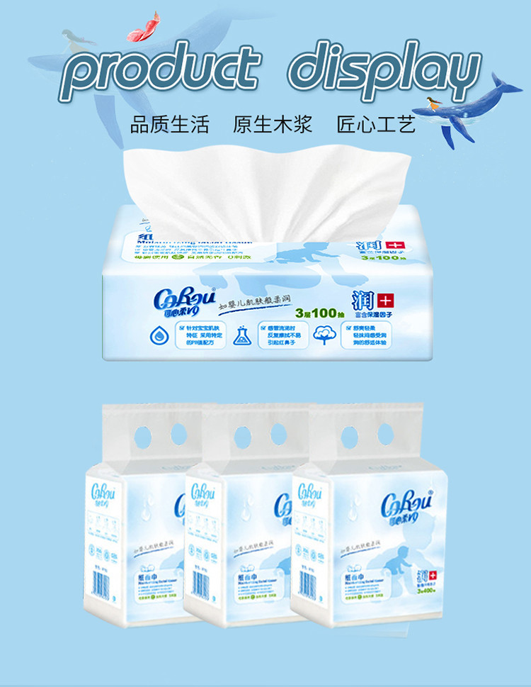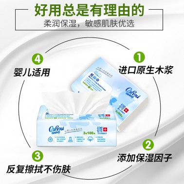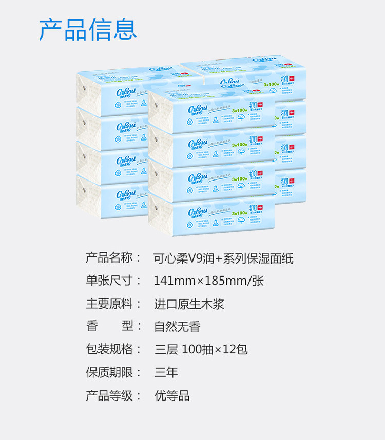 V9婴儿柔纸巾100抽12包宝宝柔润抽纸新生儿面巾纸3层中码