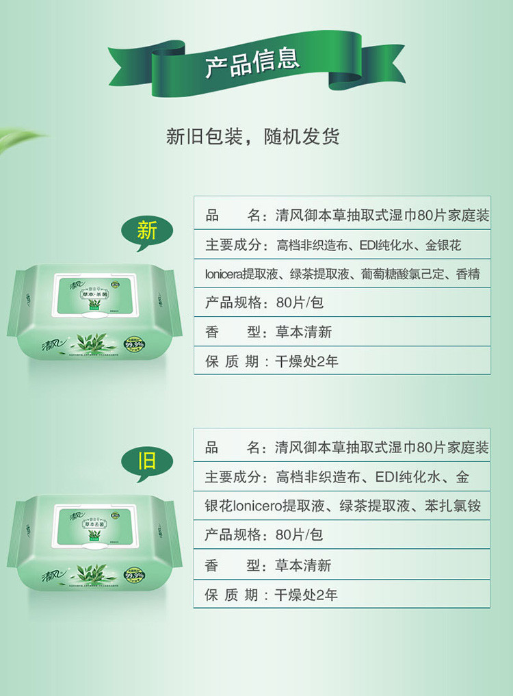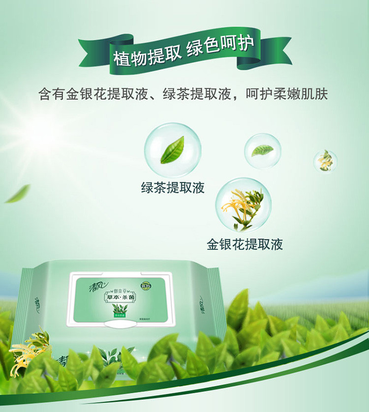 【4包XL码超大包80片装】草本杀菌无酒精湿巾家庭装杀菌率99.9%