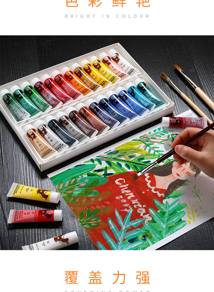 丙烯颜料套装12色24色儿童无毒防水彩绘diy涂鸦绘画盒装