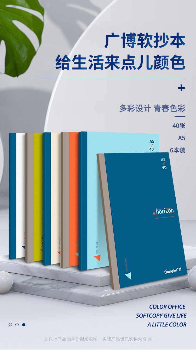 广博A5笔记本子40张60张软面抄商务办公用装订本学生软抄本6本/包