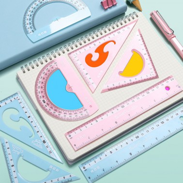 马卡龙色尺子文具四件套直尺三角尺学生用品圆规套装ins风