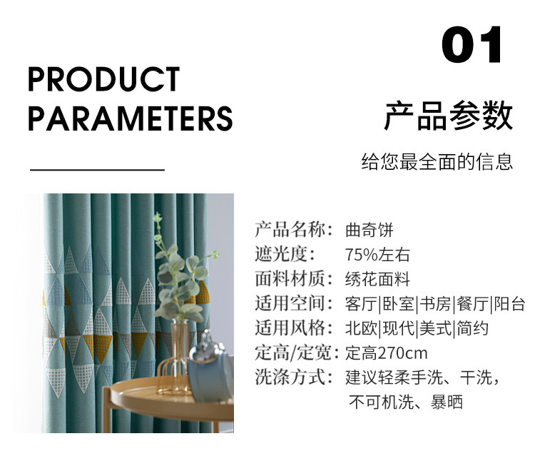 曲奇饼北欧棉麻绣花窗帘简约现代卧室客厅窗帘遮光遮阳窗帘布成品