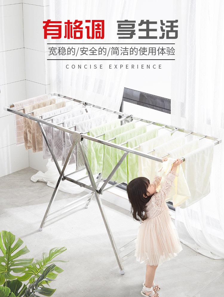 落地晾衣架室内折叠晾衣杆 阳台晒衣架不锈钢家用婴儿晾晒架