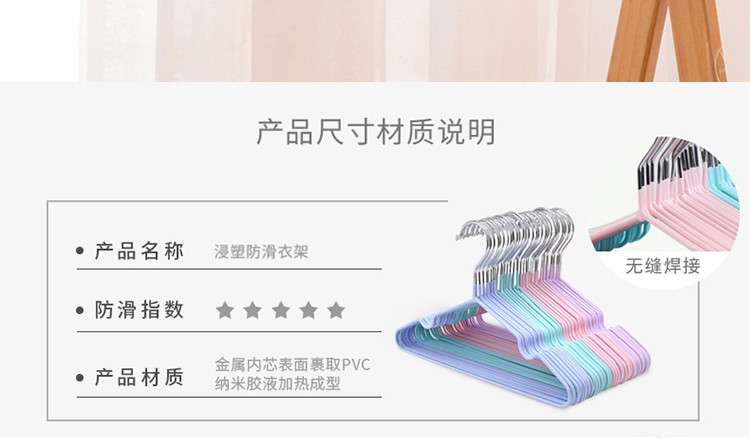 【加粗加厚】20个装浸塑防滑衣架家用无痕挂衣架晾晒衣服架