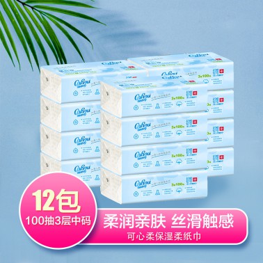 V9婴儿柔纸巾100抽12包宝宝柔润抽纸新生儿面巾纸3层中码