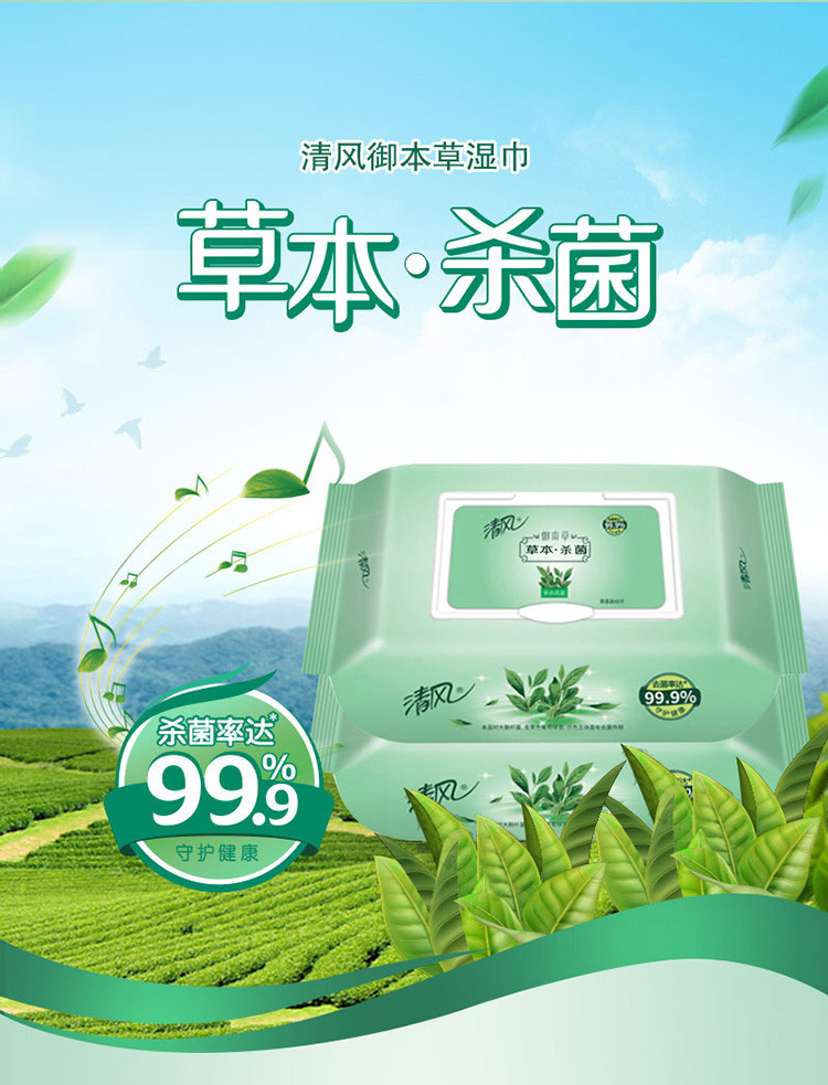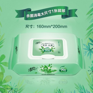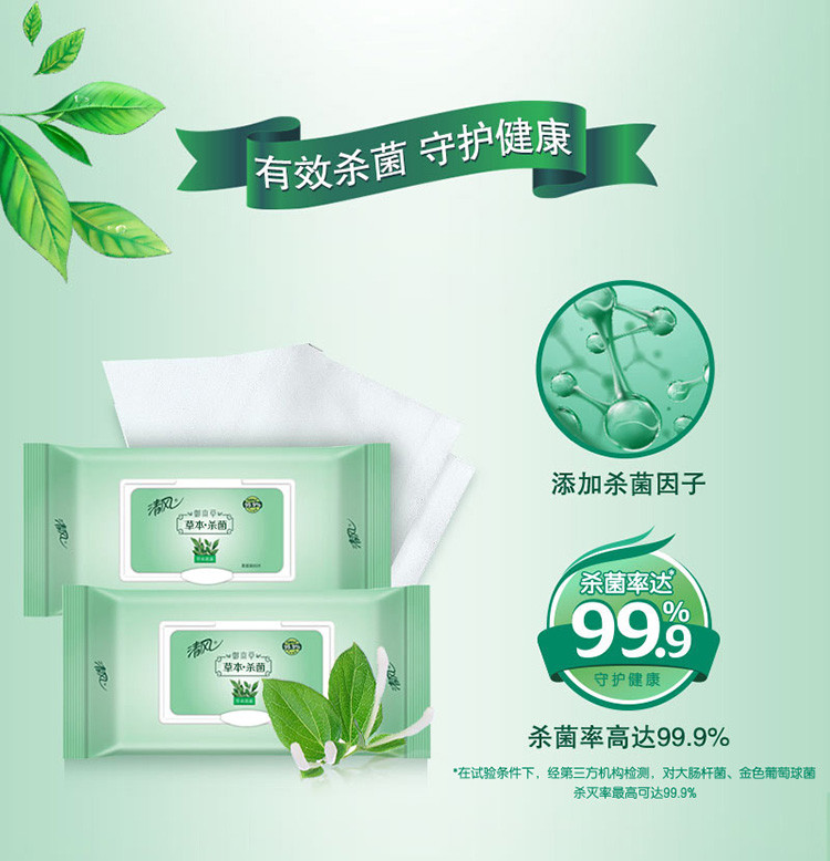 【4包XL码超大包80片装】草本杀菌无酒精湿巾家庭装杀菌率99.9%